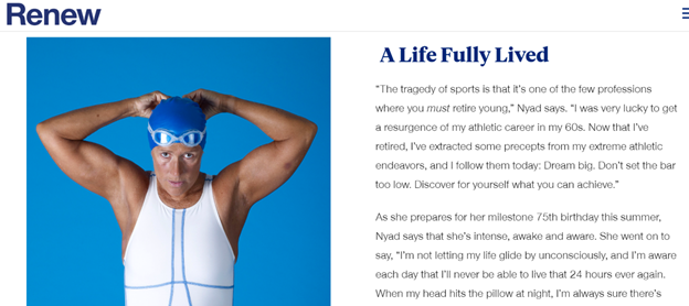 Diana Nyad completed her most memorable athletic feat at age 64, but she’s aiming for new goals now.